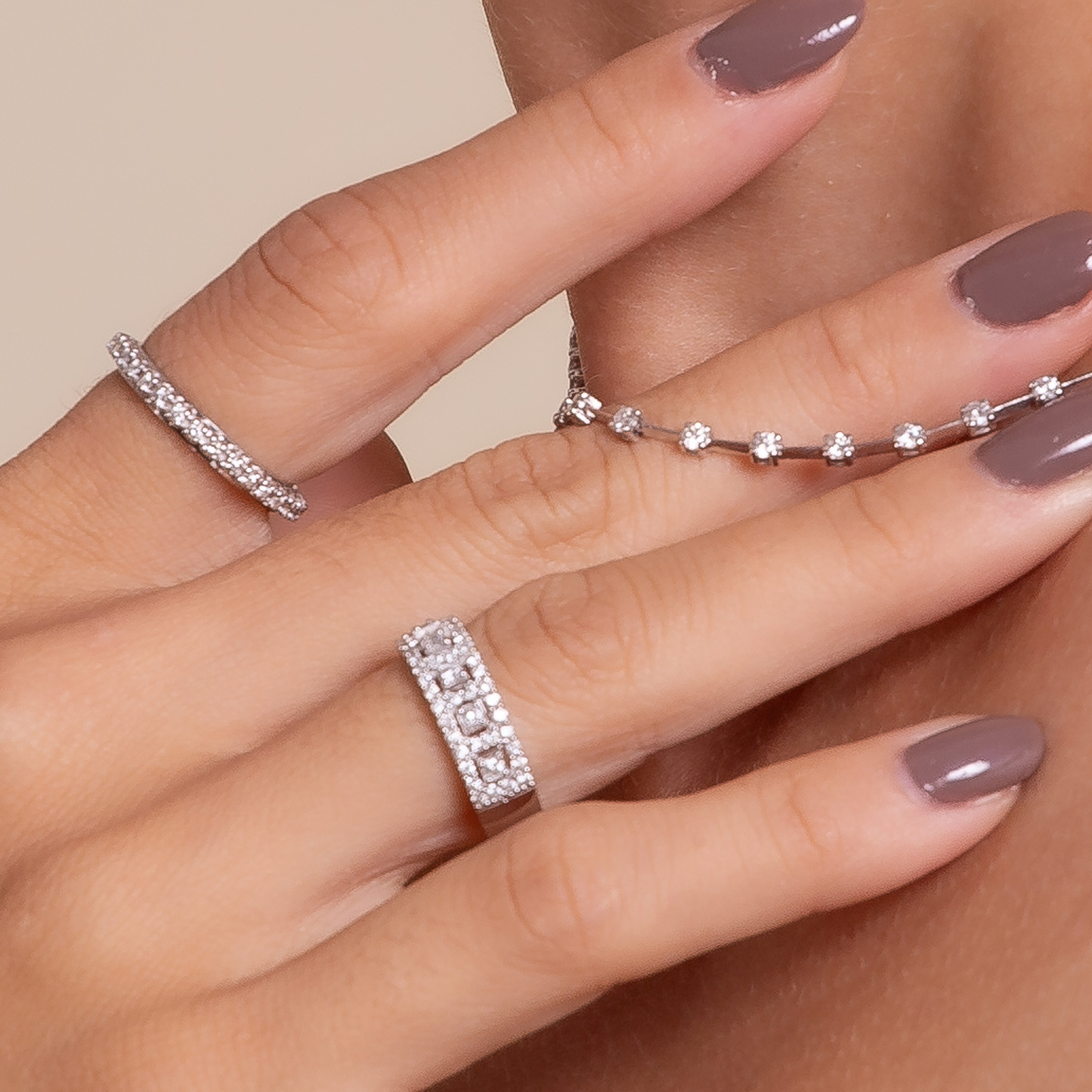 Anel em ouro 18 k com detalhes em ouro Branco e pedras